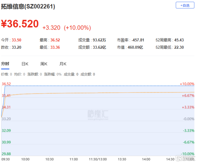 拓维信息:今日涨停,全天换手率8.17%,成交额33.62亿元。深股通净买入7343.36万元,营业部席位合计净买入4.94亿元。