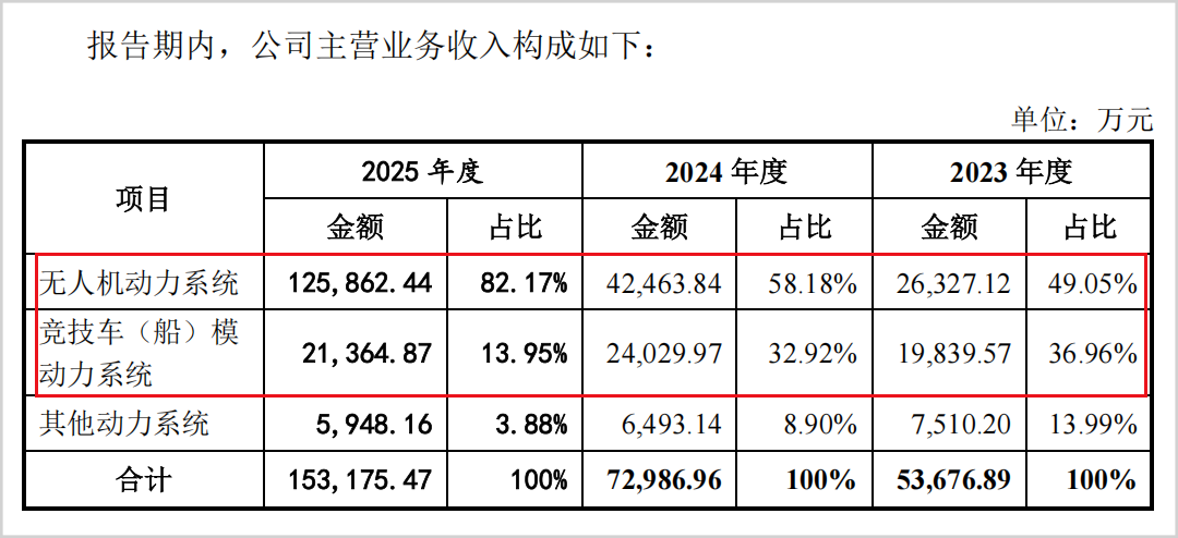 自2015年起,公司调整业务重心,切入无人机动力系统市场。这一转型成效显著,无人机动力系统收入占比从2022年的39.94%迅猛提升至2025年的82.17%,该部分收入达到12.59亿元。而传统竞技车模业务占比则相应收缩至不足20%,标志着公司已成功将主营业务锚定在更具成长空间的无人机赛道。