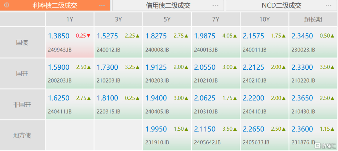 今日债市不出意外全面飘绿,10年期国债收益率上行至2.1575%,30年期收益率上行至2.345%。