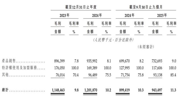 钱大妈十分依靠加盟商。报告期内,钱大妈的加盟商分别为1776、1717和1754家加盟商,分别为其贡献了110.92亿元、111.40亿元和79.55亿元,2025年前三季度,加盟商贡献了95.1%的营收。