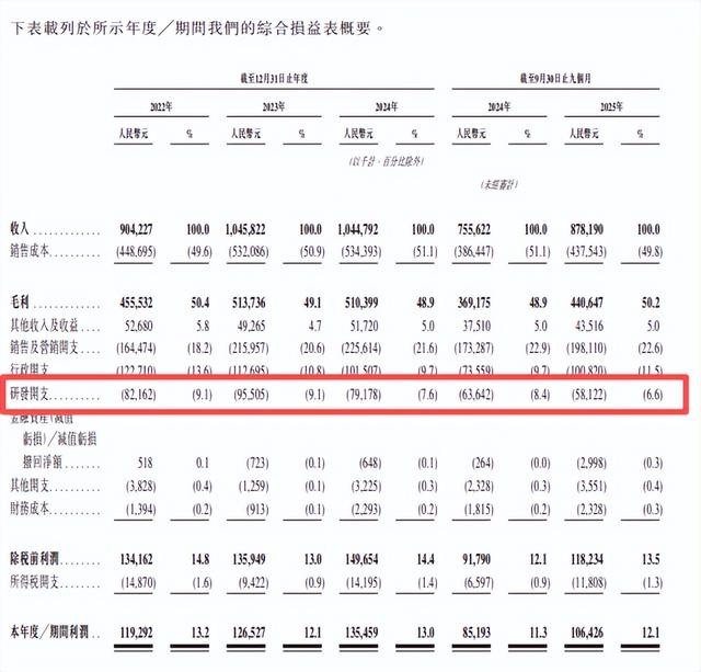 公司2025年前9个月的销售及营销开支高达1.98亿元,占营收比重达22.6%,而同期研发投入仅为0.58亿元,占比6.6%,营销费用是研发投入的3.4倍,且研发占比呈现持续下滑趋势。