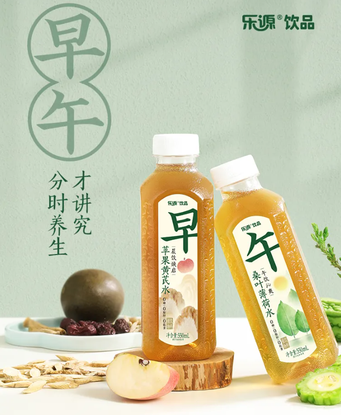 功能细分与场景深耕是今年养生水新品的另一大特征,新品覆盖了熬夜、餐后、职场润燥、气血补充等多个场景。例如,和其正“宜己水”系列聚焦“温补”“祛湿”“理气”三大功能,承德露露草本系列针对熬夜、餐后、驱寒等具体需求推出相应产品,乐源早午水系列则将饮用场景分为“早”和“午”,分别推出苹果黄芪水、桑叶薄荷水。