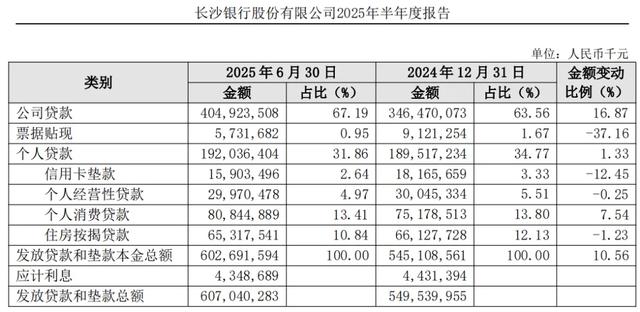 半年报显示,2025年上半年,长沙银行的个人贷款规模保持了基本稳定,贷余为1920.36亿元,同比增长1.33%。