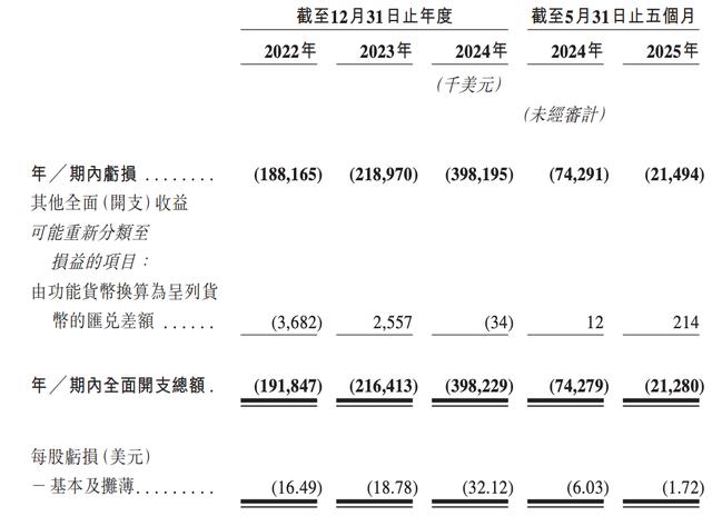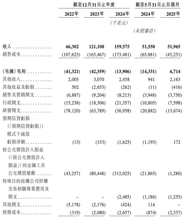 2022年、2023年、2024年度和2025年前5个月,图达通的营收分别为6630.2万美元、1.21亿美元、1.60亿美元和5196.5万美元,净亏损分别为1.88亿美元、2.19亿美元、3.98亿美元和2149.4万美元。