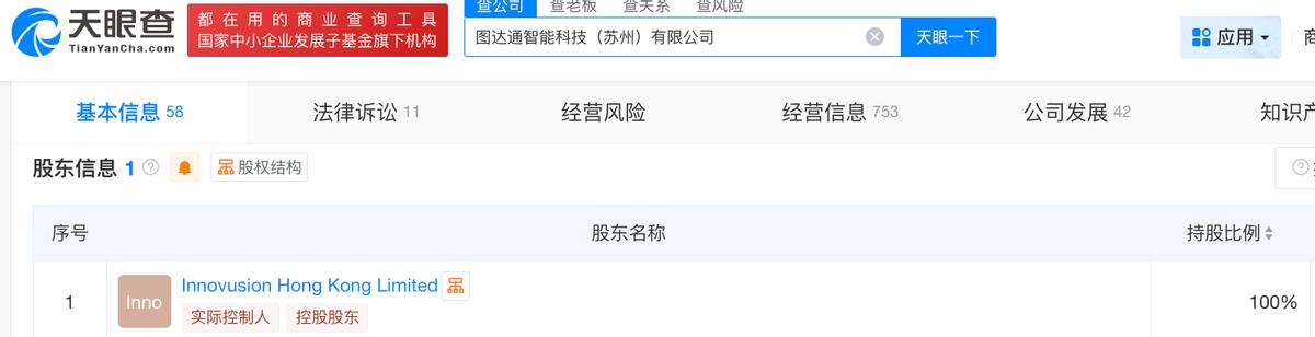 天眼查App信息显示,图达通的全称为图达通智能科技(苏州)有限公司,成立于2019年1月。目前,该公司的注册资本为1.83亿美元,法定代表人为蒲兴华,全资股东为Innovusion Hong Kong Limited。