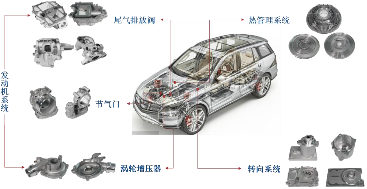 近年来,公司精准把握汽车新能源化和轻量化的战略发展机遇,新能源汽车三电系统零部件产品已成为公司业绩增长的重要驱动力,其产品主要包括OBC 箱体、车载电源集成产品箱体和端盖、逆变器壳体、电机盖板等。