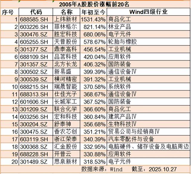 Wind数据显示,截至10月27日收盘,国内A股涨幅前20名中(剔除当年上市新股、股票ST个股),科创板、创业板个股15只,占比75%,所属行业以电子元件、电脑软硬件、既通信设备为主。