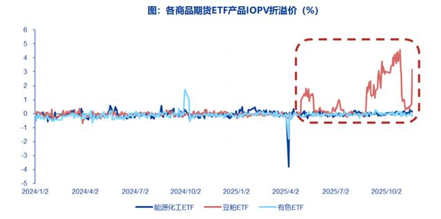 华夏饲料豆粕期货ETF(159985):跟踪大连商品交易所豆粕期货价格指数。截至11月24日,豆粕ETF规模26.81亿元,但场内溢价率高达3.62%,5月以来折溢价波动显著放大,8月底至今更是出现连续阶段性大幅溢价,最高一度超过4%。