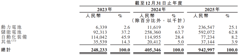 按收入来源划分,2025年,公司动力电池业务贡献的收入占25.1%,来自储能电池业务的收入占比为62.8%,均较2023年有所提升;而来自自动化装备的收入占比为8.2%,较2023年有所下降。