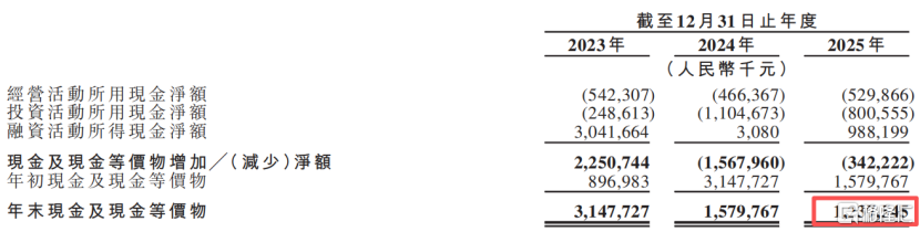 截至2025年末,清陶能源账上现金及现金等价物约12.38亿元,较2023年年底的31.47亿元明显减少。