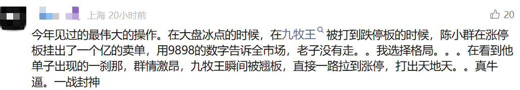 吧友们热议陈小群之际,这位游资大佬今日盘后疑似发朋友圈称自己亏了近6000万。