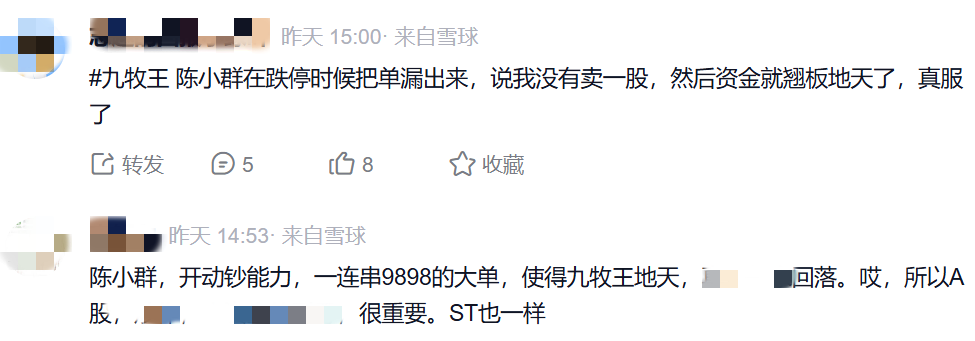 小编浏览发现,不少吧友的帖子中提到了九牧王昨日行情和游资陈小群。