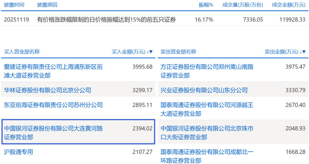 而在11月19日,陈小群常用的中国银河证券大连黄河路证券营业部席位位列买入前五,买入金额2394.02万元。