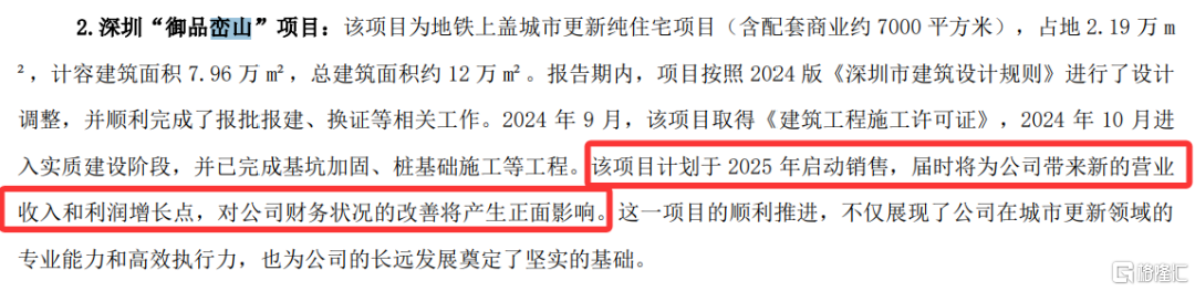 华联控股占有御品峦山雅苑权益70%,在2024年的财务报告中不仅强调项目会为公司带来新的营业收入和利润增长点,会对公司财务状况的改善,还强调要加快御品峦山雅苑的建设,确保2025年底前顺利实现销售,并定下了一个15亿元的销售目标。
