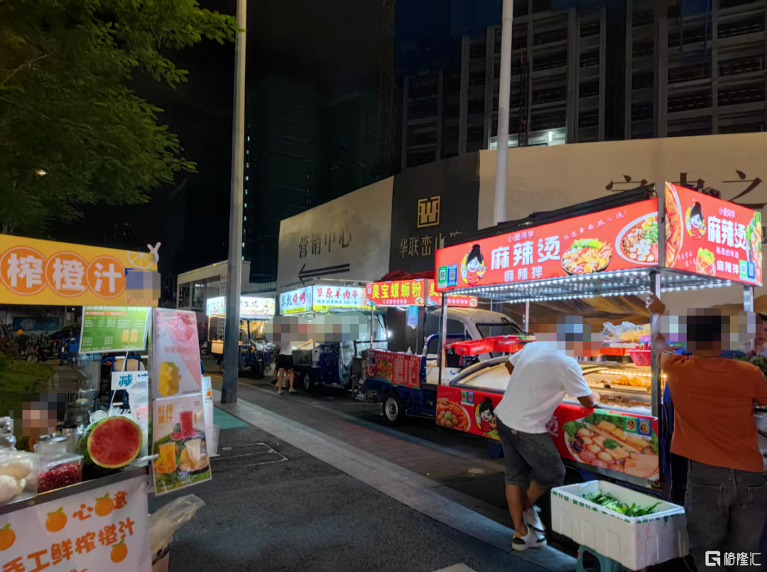 还有这样的——靠近航城大道和前进二路一侧,摆满了夜宵摊位,人来人往,充满了烟火气。