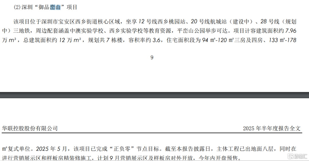 到了2025年上半年,华联控股在半年报中也再次重点提及项目的占地面积,周边配套、开发进度、户型以及累计总投资达到37575万元。