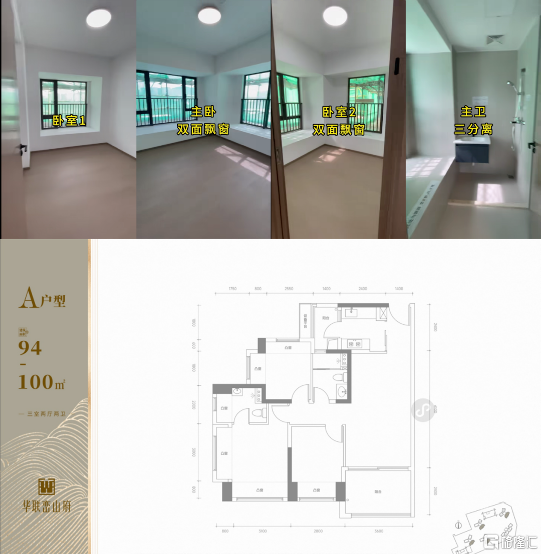 如96平户型,无论是户型图还是实际的样板展示空间,卧室及卫生间都带着凸窗,尤其是主卧卫生间的凸窗面积占比并不低,而实际得房仅约77.6%。