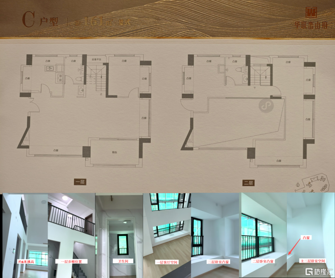 再如161平户型,项目对外推广定位为“新规复式”,双阳台平层+6米挑高,而实际得房率约78%。