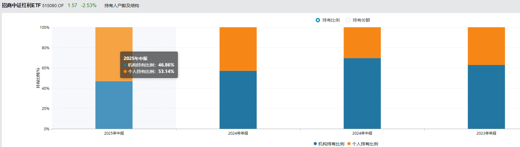 这种震荡格局里,资金的态度反而比指数本身更有意思。全市场ETF最近一周净赎回超过118亿元,宽基和行业主题是流出主力,但红利类策略ETF逆势吸金接近93亿元。具体到中证红利ETF招商(515080),已经连续8个交易日获得资金净流入,合计吸金9.85亿元。昨天市场大跌的时候,这只ETF单日净申购1.11亿元,近5日累计净申购3.91亿元。