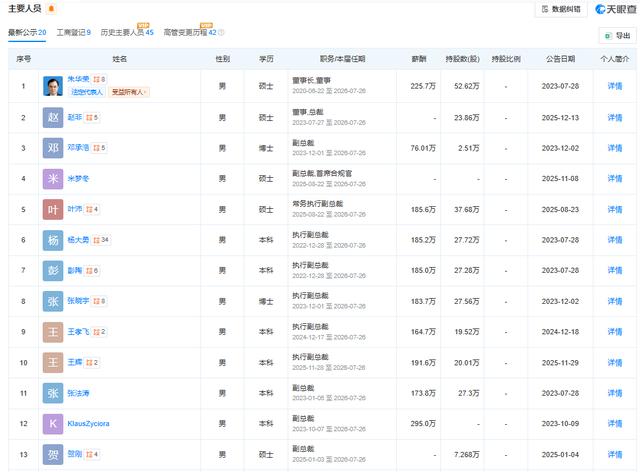 天眼查数据显示,长安汽车完成了一场覆盖集团、主品牌、新能源板块的全链条人事重组。叶沛、王辉、邓承浩、贺刚等少壮派高管分别执掌集团常务运营、高端品牌与海外业务、主力新能源品牌以及智能化研发等核心领域。