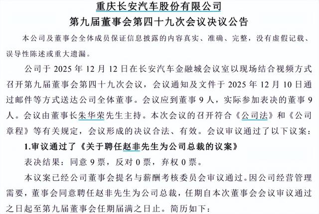 赵非的接任标志着长安汽车管理层完成系统性重塑。