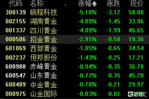 贵金属股走低,晓程科技跌超5%,湖南黄金、四川黄金跌超4%,招金黄金跌超2%,西部黄金、赤峰黄金、山东黄金等跟跌。