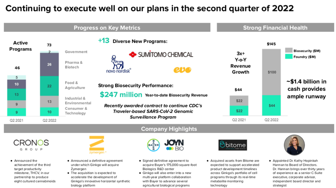 来源:Ginkgo Bioworks, Q2 2022 Business Review