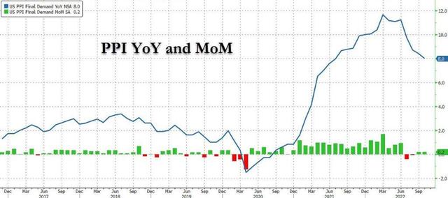 近日,不少人说美国通胀降温有新证据了,继10月CPI超预期放缓后,美国10月PPI数据也好于预期了,比预期低了0.4%。