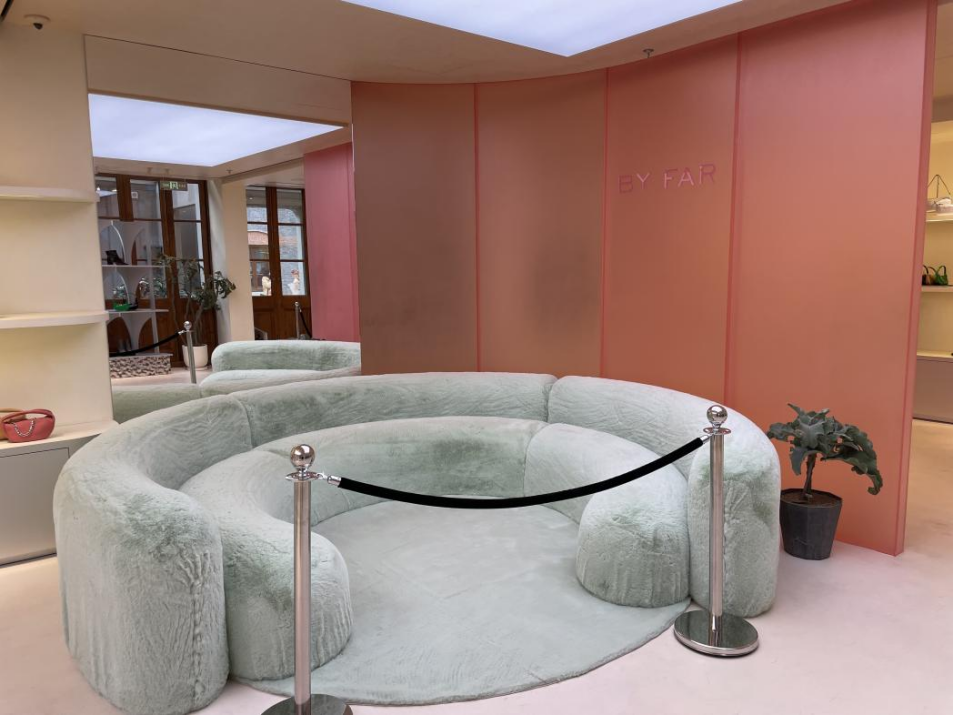 与此同时,今年7月28日至8月7日,BY FAR首次在上海TX淮海开设了七夕线下限时体验店,开启了为期12天的线下市场初探索。该店以亮粉色为主色调,呈现浪漫的沉浸式线下空间。