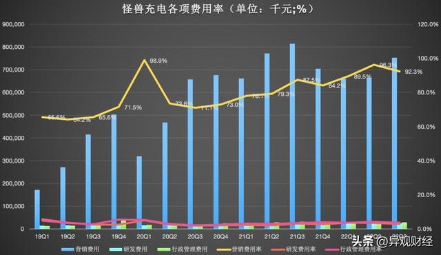 数据显示,怪兽充电本季度的研发支出为2428万元,同比减少16.7%,这是三年多以来,该项支出首次出现同比减少的情况,研发费用率从上一个季度的3.4%,下降至本季度的3%。