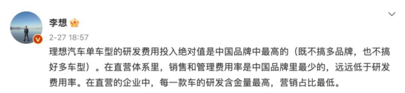 之前李想也在社交媒体上承认,不会降价。