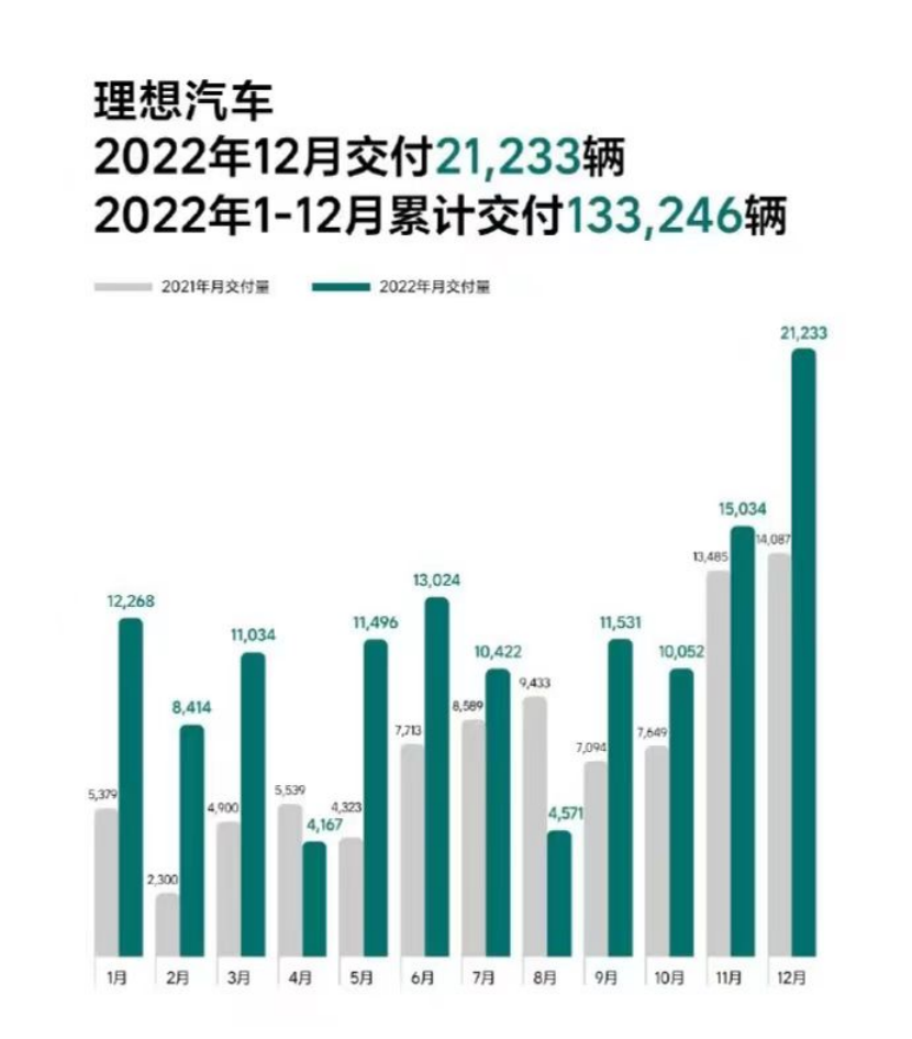 日前理想发布了四季度及全年财报。过去一年,理想汽车全年实现营收452.9亿元,同比增长67.7%;全年交付约13.3万辆,同比增长47.2%。虽然2022年经营亏损为36.5亿元,亏损同比扩大259.3%,但在完成新旧车型的换代后,理想在四季度完成盈利,净利润 2.65 亿。
