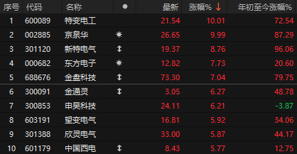 之前和大家提过,“算力的尽头是电力”的叙事正在成为现实,电网设备板块相比光模块、pcb来说,没被热炒过,最近有资金切到了电网设备板块。今天特变电工、京泉华涨停、新特电气、金盘科技等多股大涨。