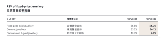 非黄金产品贡献了三至四成定价首饰零售值 / 周大福2026财年半年报