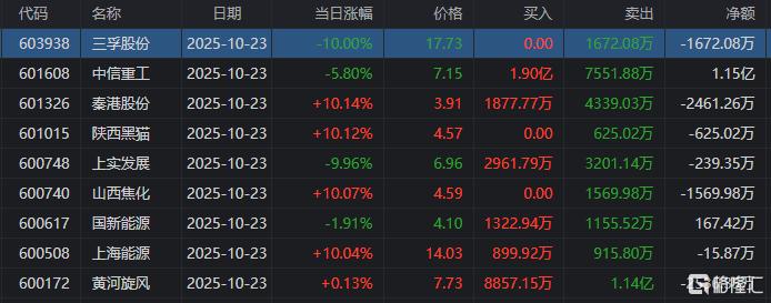 在龙虎榜中,涉及沪股通专用席位的个股有9只,中信重工的沪股通专用席位净买入额最大,净买入1.15亿元。
