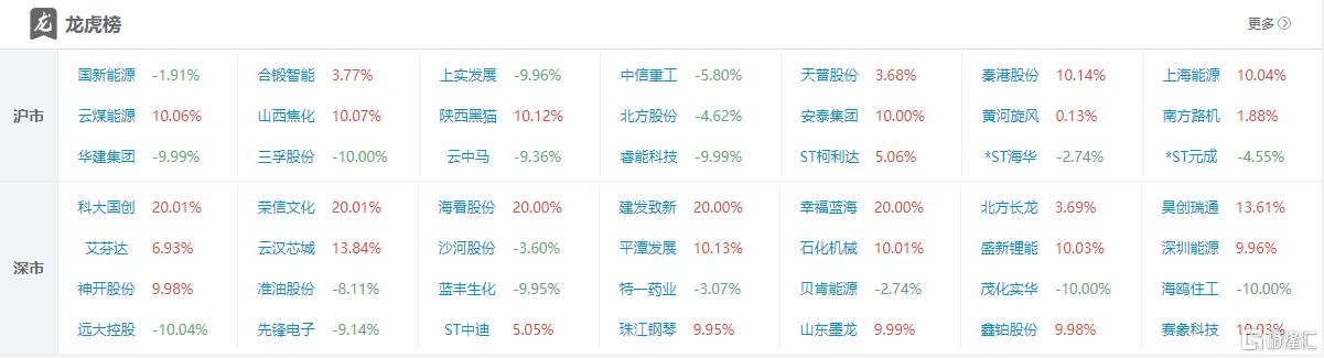 焦点股方面,煤炭股大有能源10天9板、安泰集团6天4板,深地经济概念股神开股份4连板、石化机械4连板,并购重组的盈新发展4连板。