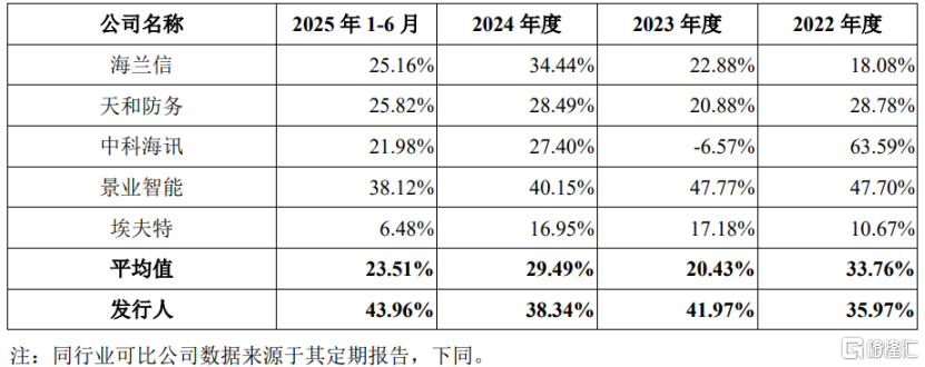 报告期内,深之蓝的主营业务毛利率分别为35.97%、41.97%、38.34%和43.96%,高于海兰信、天和防务、中科海讯等可比公司主营业务毛利率均值,主要系不同公司的具体产品、下游应用场景、市场竞争程度、管理经营战略等不同所致。