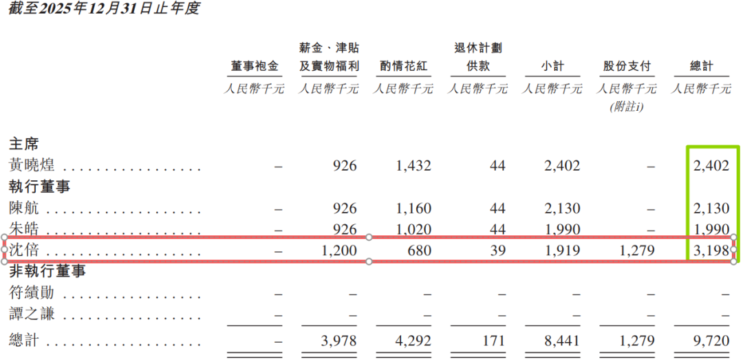 2023年至2025年,沈倍累计获得约794.6万元的股份支付薪酬,2025年总薪酬达319.8万元,在4名高管中居首。