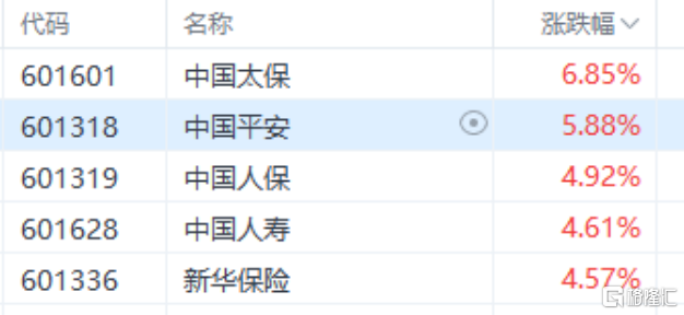 H股,中国太平涨幅达到7.1%,中国太保、中国人保、新华保险涨幅也均涨在5%。
