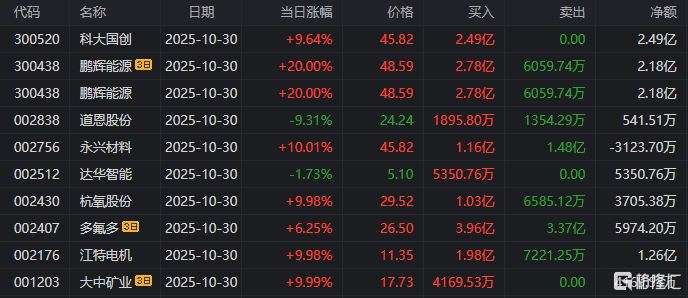 成都系:净买入鹏辉能源6738万元、江特电机6488万元,净卖出平潭发展4890万元