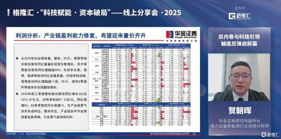 截止25Q3,无论是整机叶片、塔筒这个铸件零部件等相关零部件这些环节来说,都实现了较强的盈利增长。