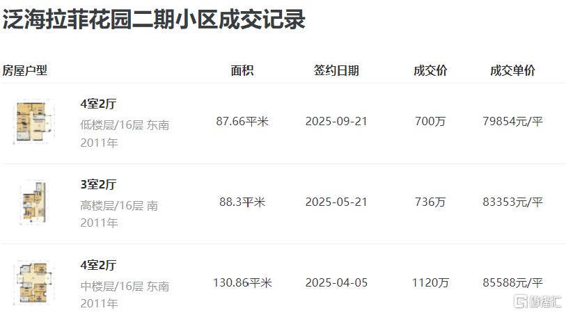 山樾湾花园周边附近超过10年楼龄小区二手房7万-8万/平,如泛海拉菲二期今年9月成交一套约88平户型,成交总价约700万,折合单价约7.98万/平,香格名苑9月成交一套约88平户型成交总价约626万,折合单价约7.11万/平。