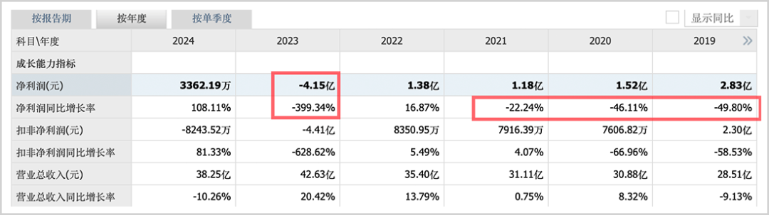 2019年至2021年,贵州百灵净利润均出现下滑,降幅分别高达49.8%、46.11%和22.24%。并在2023年出现上市来首次亏损。