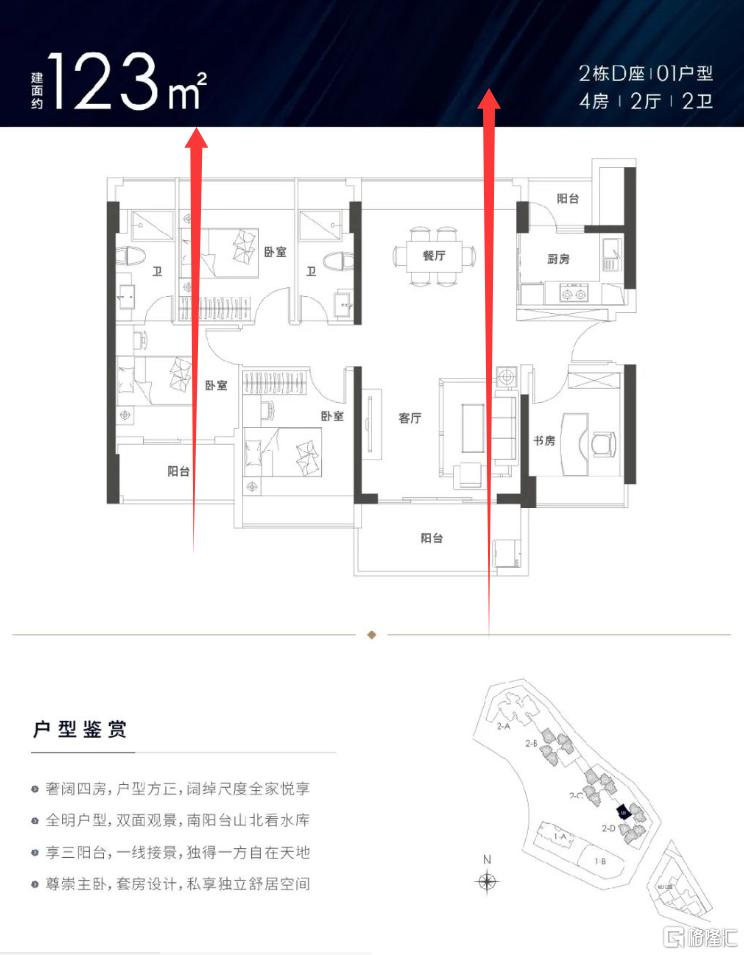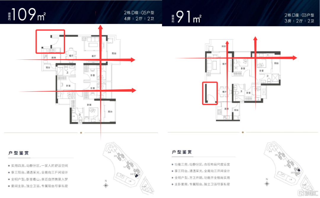 虽然项目户型整体看都比较方正,但项目需要超过120平的户型才能做到比较通透。