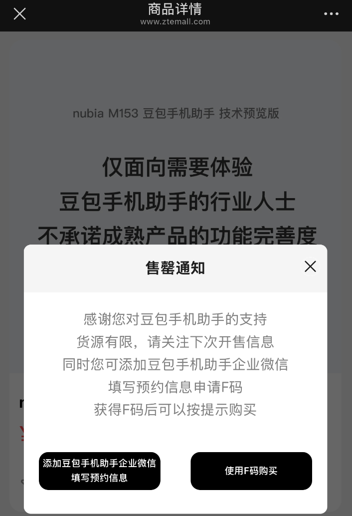12月1日,字节跳动旗下AI助手豆包和中兴通讯先后宣布,搭载豆包手机助手技术预览版的工程样机nubia(努比亚)M153少量发售。目前该机型在中兴商城售卖,仅有16GB+512GB一款配置,售价为3499元。