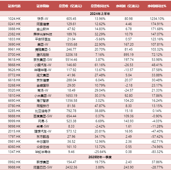【中报披露基本完成:恒生科技指数成份股业绩超全汇总】