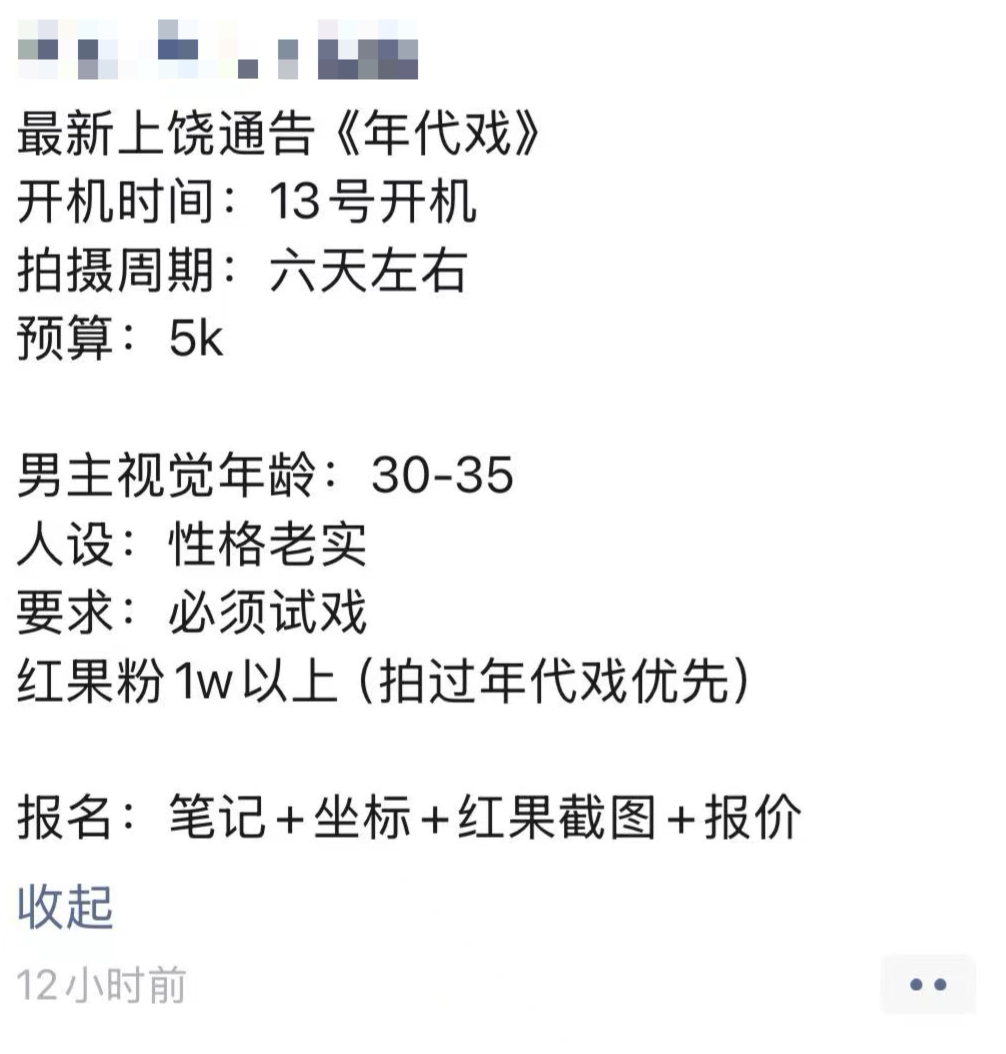 在部分组讯里,会直接要求演员达到一定程度粉丝量。(受访者供图)