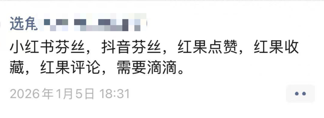 毛欣颜见过业内许多演员买粉丝,她曾犹豫过,最后还是不希望自己陷入数据焦虑。但只要她想,刷量并不是难事。她表示,演员通告群内就潜伏着不少提供刷量服务的商家,频繁发布优惠广告——而群内发布的组训大多对演员粉丝量有要求,恰好让这类广告精准触达目标受众。