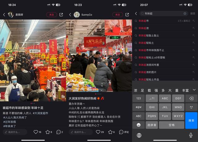 这种感受并非李茗蕊独有,越来越多的年轻人也开始热衷于在超市中寻找年味,相关帖子已累积上万条。其中,“音乐”“人气”“红”被反复提及——大家对于年的记忆都是相似的。