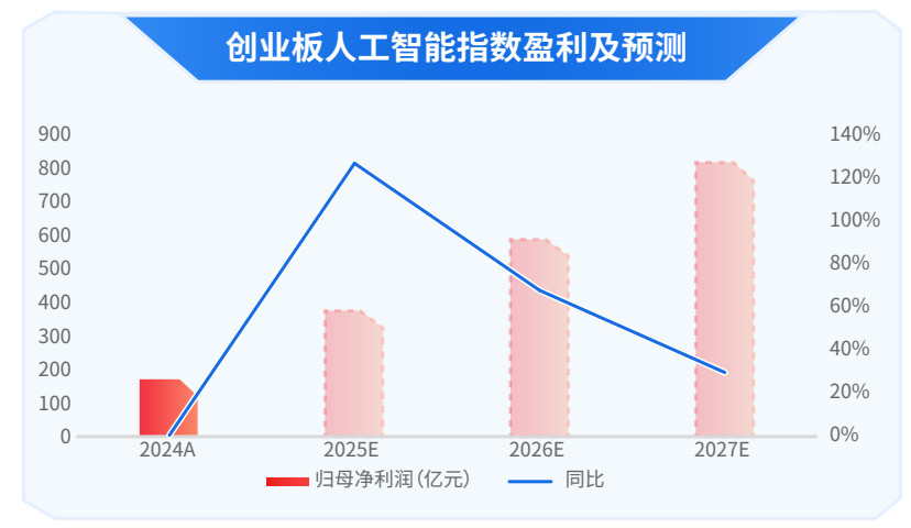 更关键的是基本面支撑。根据Wind数据,创业板人工智能指数2025年归母净利润增速有望达127.36%,显著高于创业板指。这意味着,指数的上涨并非纯粹的情绪驱动,而是有着扎实的盈利增长作为基础。